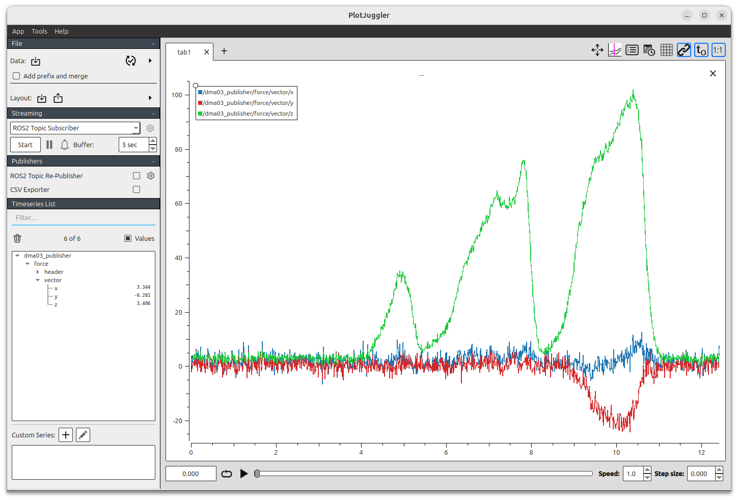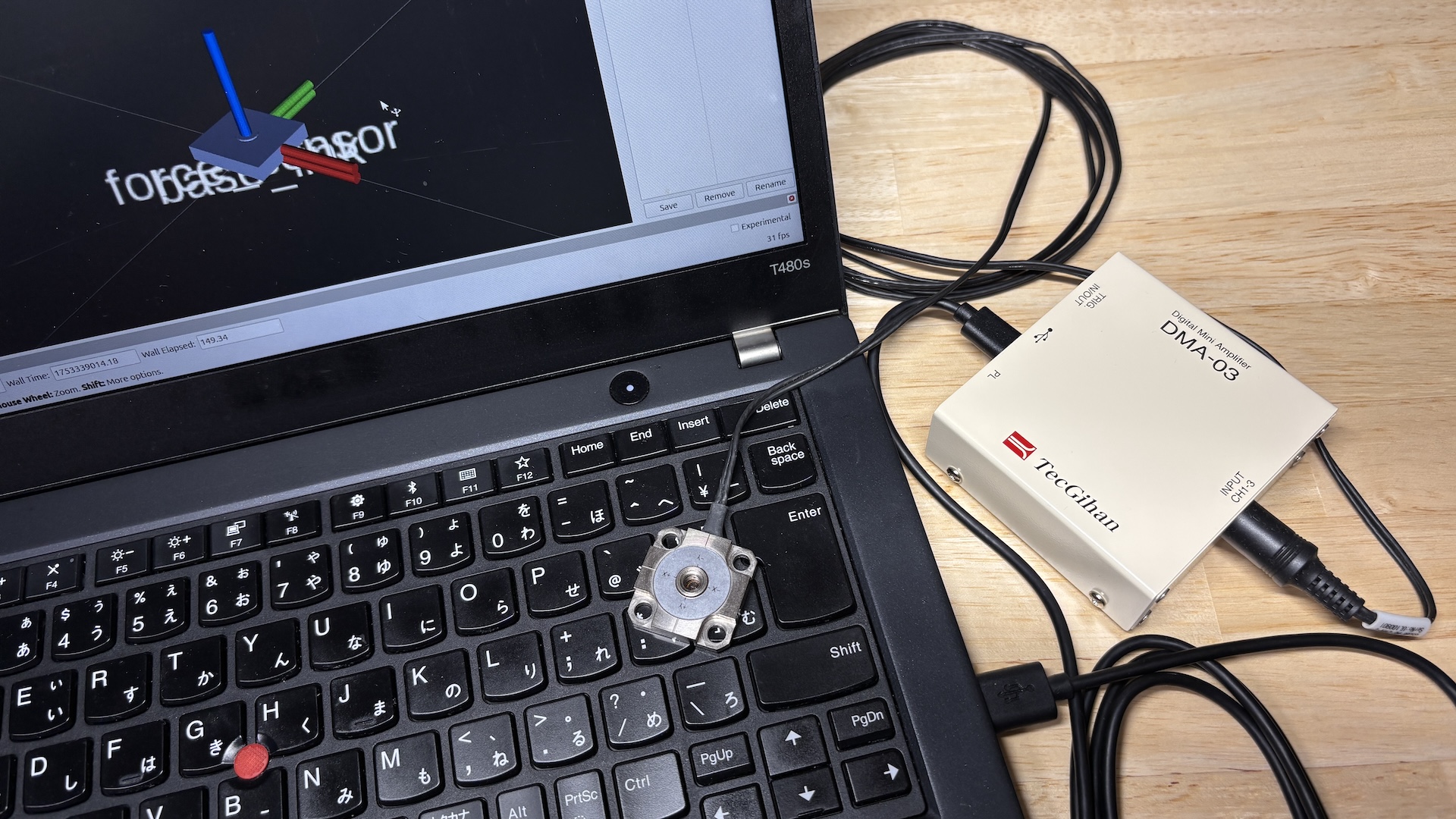 ロボット用フォースセンサアンプ DMA-03 for Robot のドライバソフトウェアが ROS に対応したことで テック技販 社製の小型フォースセンサを容易にロボットシステムに組み込むことが可能となっています.また,計測されたデータを ROS の豊富なツールで活用することもできます.